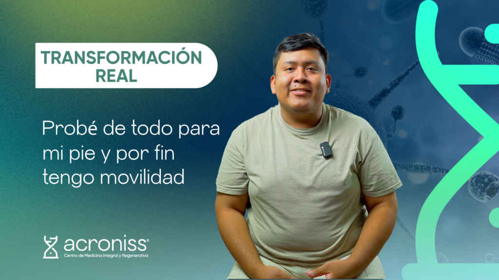 Caso de Éxito: Recuperación de Jesús Nuñez Nuestro paciente Jesús tuvo un accidente en moto hace unos años y sufrió daños notorios en su pie izquierdo. Durante años, pasó por médicos que le recetaban calmantes, pero la incomodidad al caminar seguía presente. Finalmente, llegó a Acroniss Centro de Medicina Integral y Regenerativa, donde nuestro Dr. Jorge Saldaña pudo realizar un tratamiento integral con la aplicación de Exosomas y un cambio en su estilo de vida. En menos de 48 horas, Jesús comenzó a notar cambios significativos en su movilidad y bienestar. A pesar de los avances, la medicina regenerativa aún enfrenta desafíos en términos de regulación, seguridad y costos. Sin embargo, el potencial de estas terapias para mejorar la calidad de vida y tratar enfermedades hasta ahora incurables es innegable. En conclusión, la combinación de células madre y exosomas representa una revolución en la medicina moderna. A medida que la investigación avanza, se espera que estas terapias sean más accesibles y eficaces, cambiando el panorama de la medicina regenerativa en los próximos años.